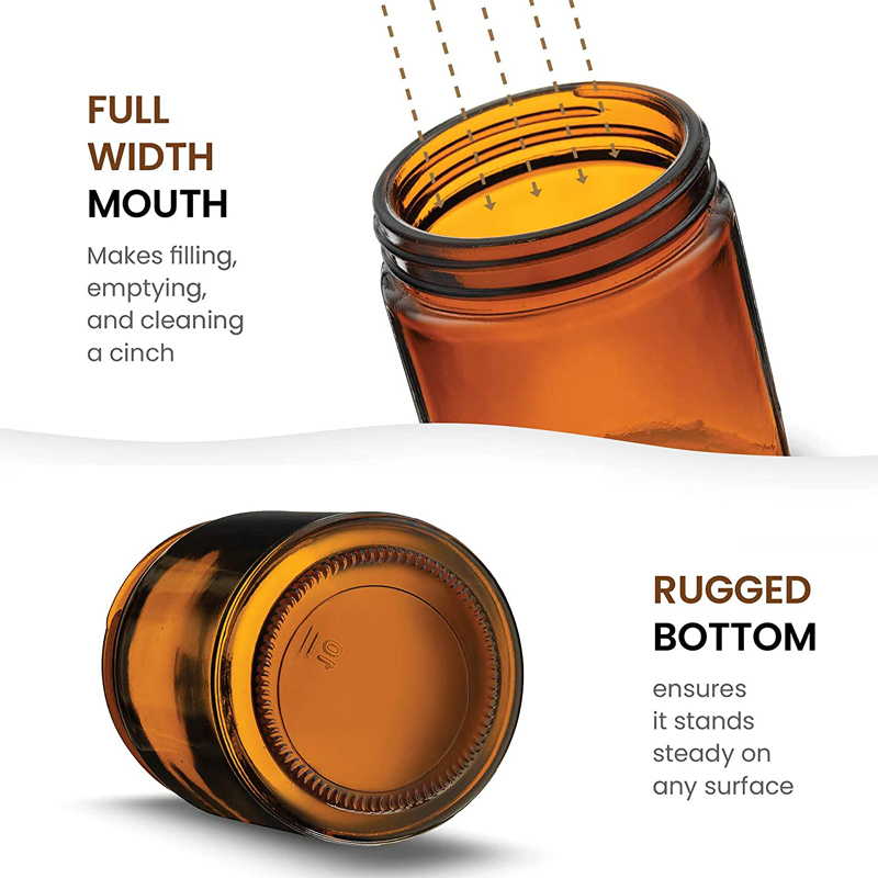 UV Protection: The rich amber hue naturally filters out damaging Ultraviolet (UV) light, which is crucial if the jar is used for products containing sensitive fragrance oils or other light-degradable ingredients (though less critical for just wax). It signifies a premium, apothecary-style product.