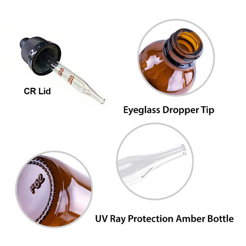 The Classic Shape of Glass Bottle with Dropper Pipette for Controlled dispensing by the drop. Used for Tincture Packages.